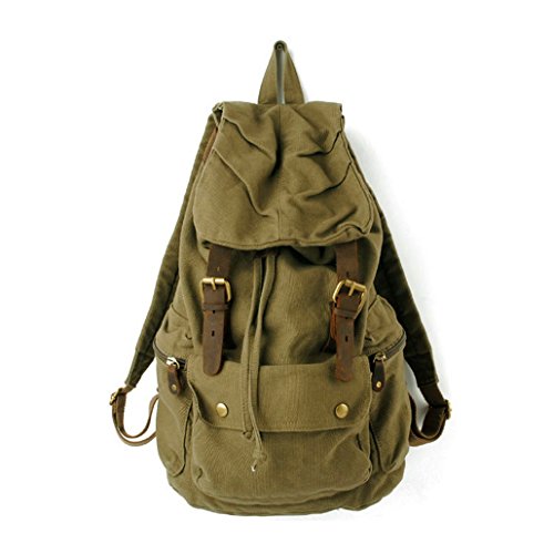 Why Use S.C.Cotton Canvas Leather Backpack Rucksack Satchel Bookbag Hiking Bag - Army Green ?